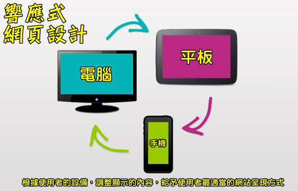 所謂的響應式網頁設計,就是能夠根據使用者的設備,調整顯示的內容,給予使用者最適當的網站呈現方式。例如筆電電腦的顯示尺寸較大,可以顯示圖文並茂的內容;智慧手機螢幕小,以文字顯示為主,避免使用大尺寸的圖片。